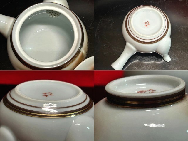 string(184) "◇磁器と漆器、それぞれの日本伝統工芸【九谷焼 栄峰作×春慶塗 中山作】風景図 茶器揃い 蓋付湯呑五客・急須・茶たく付 木箱入 Q12149"