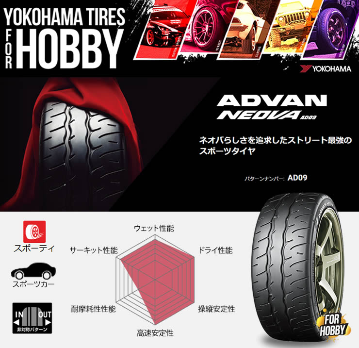 | ご覧いただき誠にありがとうございます。 お急ぎの場合は入札前に質問欄で予定に間に合うかどうかの確認をしてください。 迅速、丁寧を心掛けております。ご安心して取引ください。 タイヤメーカー:ヨコハマタイヤ アドバン ネオバ AD09