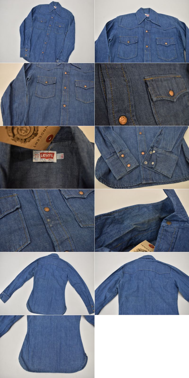 string(91) "108575 1970s VINTAGE LEVI'S デニム ウエスタンシャツ UK 白タブ カットオフ"