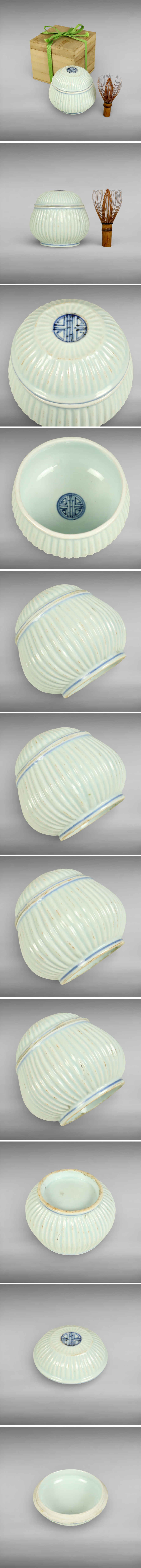 李朝期 青白磁 鎬文 染付 蓋物 骨董品 美術品