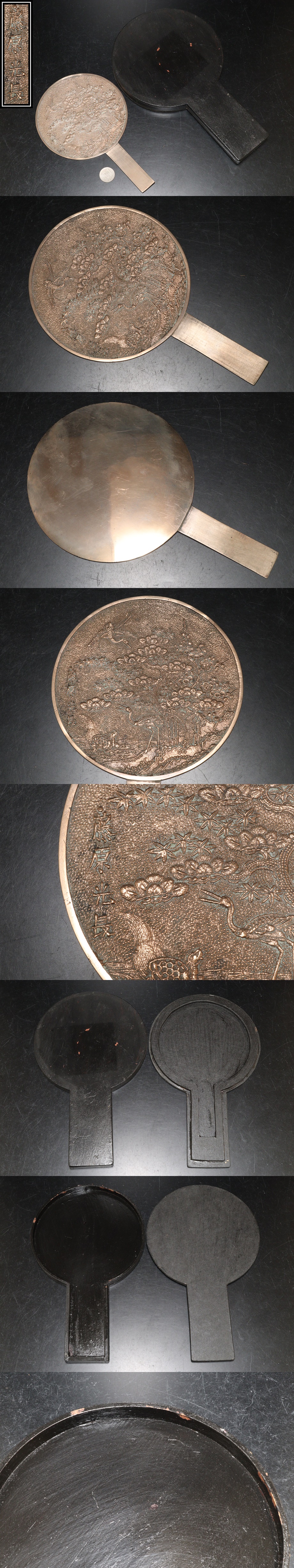 string(64) "P 藤原光長 鶴亀松竹梅図 銅鏡 重量160g ケース付"