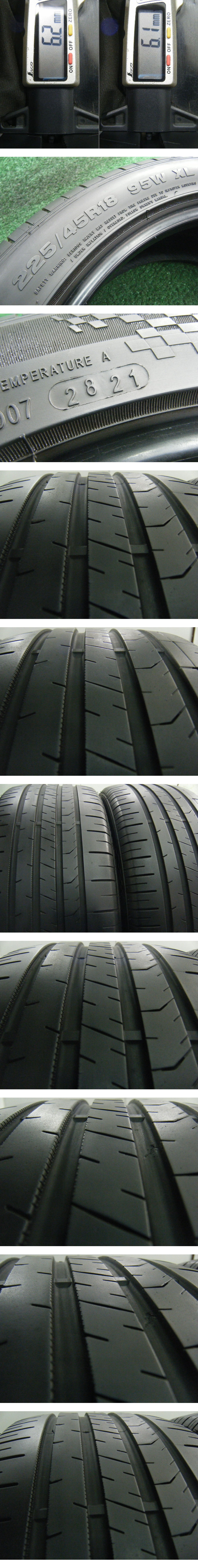 ※残り溝に関しましては、主観の差が出ないよう、国産のタイヤゲージを用いて計測を行い、計測画像を掲載し、『目安』としての残り溝(~分山)を記載させて頂いております。