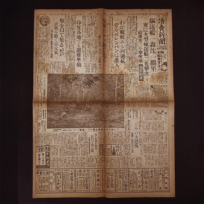 string(158) "S0076 戦前 昭和17年2月20日 読売新聞 夕刊 大東亜戦争 大日本帝国 陸軍 海軍 堂々パレンバンに進入 皇軍ビルマ路に迫る"