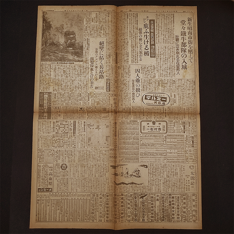 戦前 昭和17年2月20日 読売新聞 夕刊です。 かなり古い新聞ですのでヤブレ、サケ、ヤケ、ヨゴレ等がございます。 |