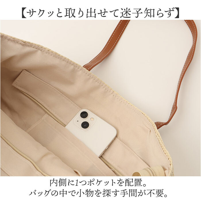 ・内側に1つポケットを配置。バッグの中で小物を探す手間が不要。