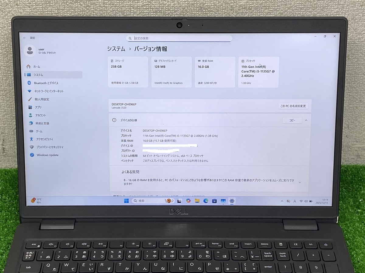 dell latitude 3520 i5 11th generation デール ノートpc i5-1135G7 メモリ16GB SSD256GB 15.6 FullHD i5 11th gen laptop ノートパソコン
