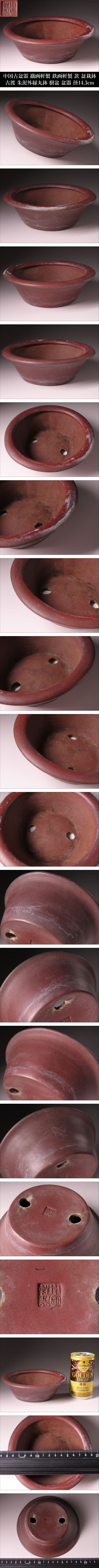 【ONE'S】中国古盆器 鐵画軒製 鉄画軒製 款 盆栽鉢 古渡 朱泥外縁丸鉢 樹盆 盆器 径14.3cm 古美術品 | |||