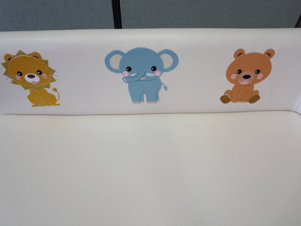 6種類のオリジナルアニマルデザインを刺繍加工した縦型オムツ交換台。衛生的で掃除が容易なメッシュ棚付き。便利なアジャスター付き。クッション厚:40mm重量:約29kgサイズ:幅650奥行800高さ980