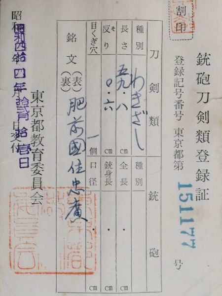 | 備考 | ※銃砲刀剣類所持等取締法により 都道府県の教育委員会へ所有者変更の届出が必要です。 落札後、変更届出をよろしくお願い申し上げます。 |