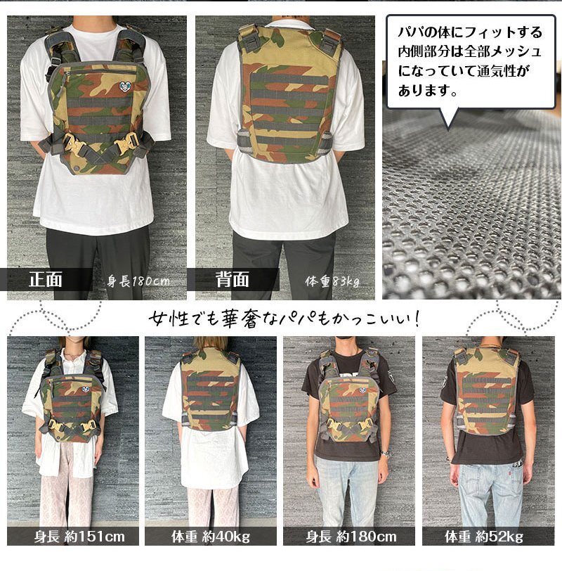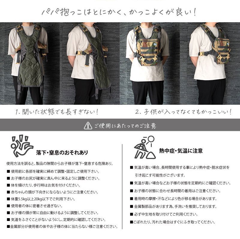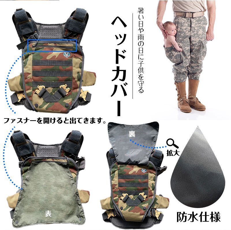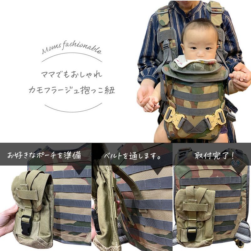 迷彩柄でおしゃれ度を追究したかっこいい抱っこ紐。