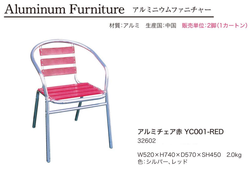 ●アルミチェア赤 YC001-RED 1セット(2脚) (32602) →