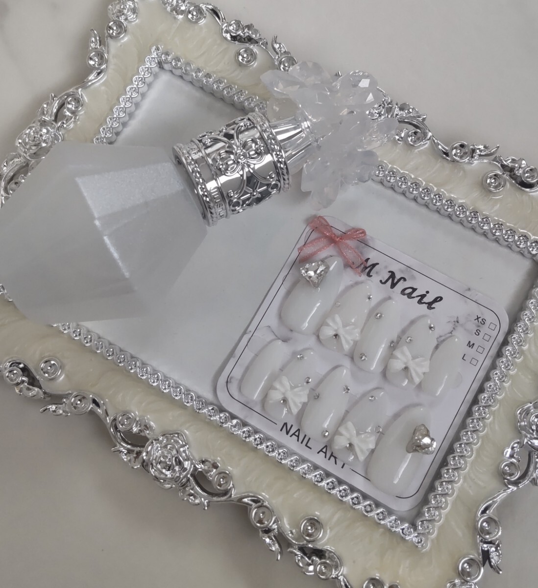 #ネイルチップ#ガーリー #スナ系 #韓国 #ワンホン #ちゅるん#ジェルネイルチップ#現品#クリスマス#ハンドメイド#リボン#ニュアンス#ハート "