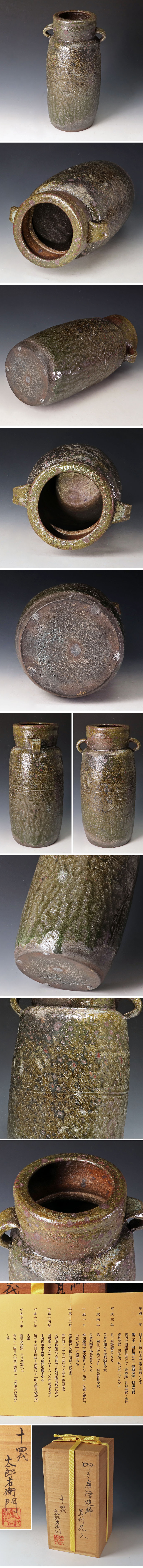 | 【古美味】十四代中里太郎右衛 叩き唐津締耳付花入 茶道具 保証品 |