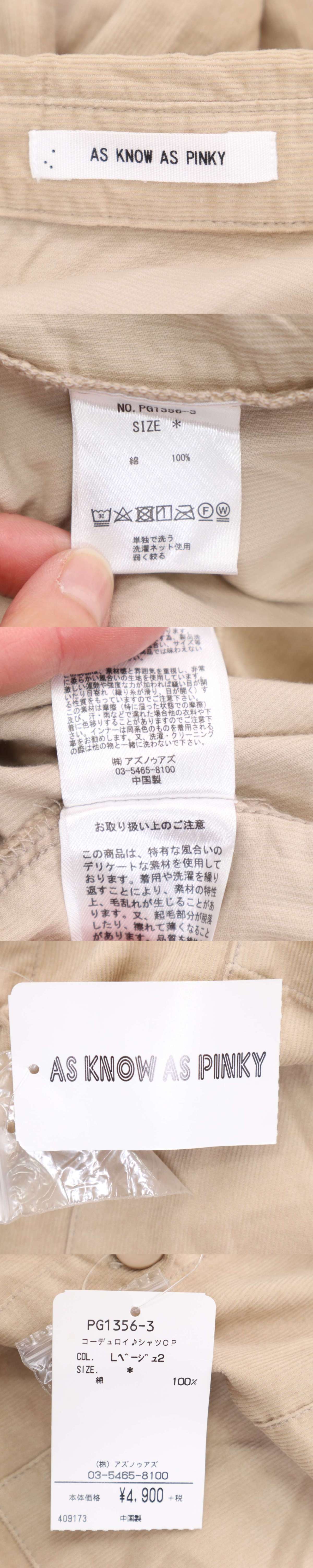 string(149) "【新品 未使用】 AS KNOW AS PINKY アズノウアズ ピンキー 秋冬 コーデュロイ★ シャツ ワンピース Sz.* レディース"