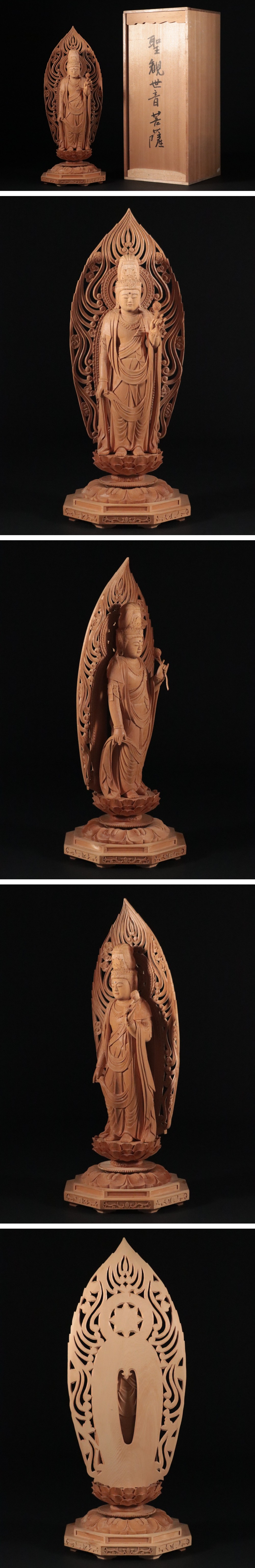 string(175) "京都 仏師 京佛師 稲田光胤 / 仏教美術 木彫 聖観世音菩薩 立像 共箱 / 透彫 水煙 光背 / 木造 細密彫刻 仏像 佛像 骨董品 / 高さ45,5cm"