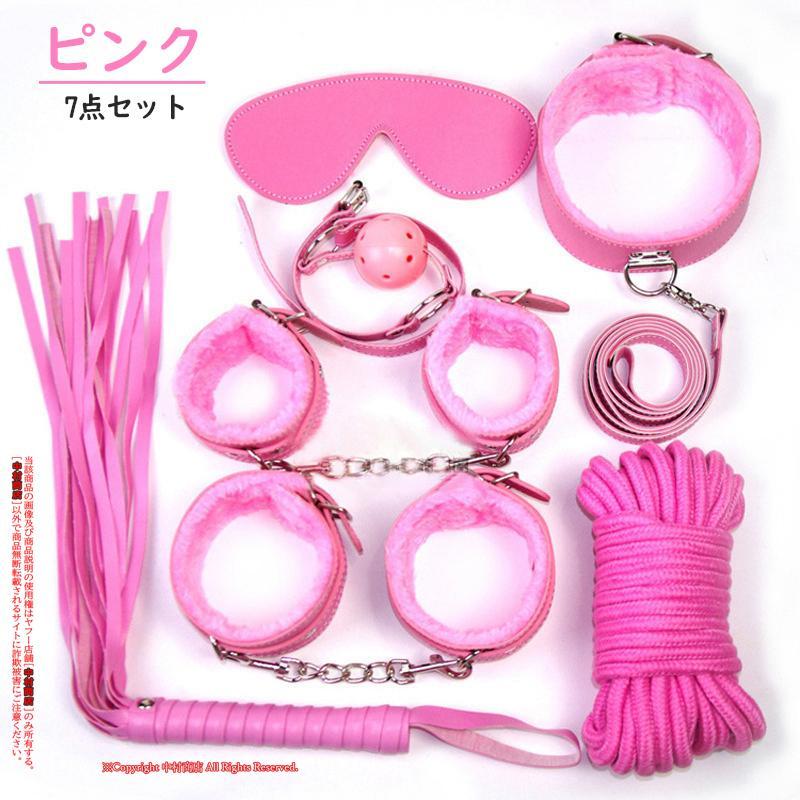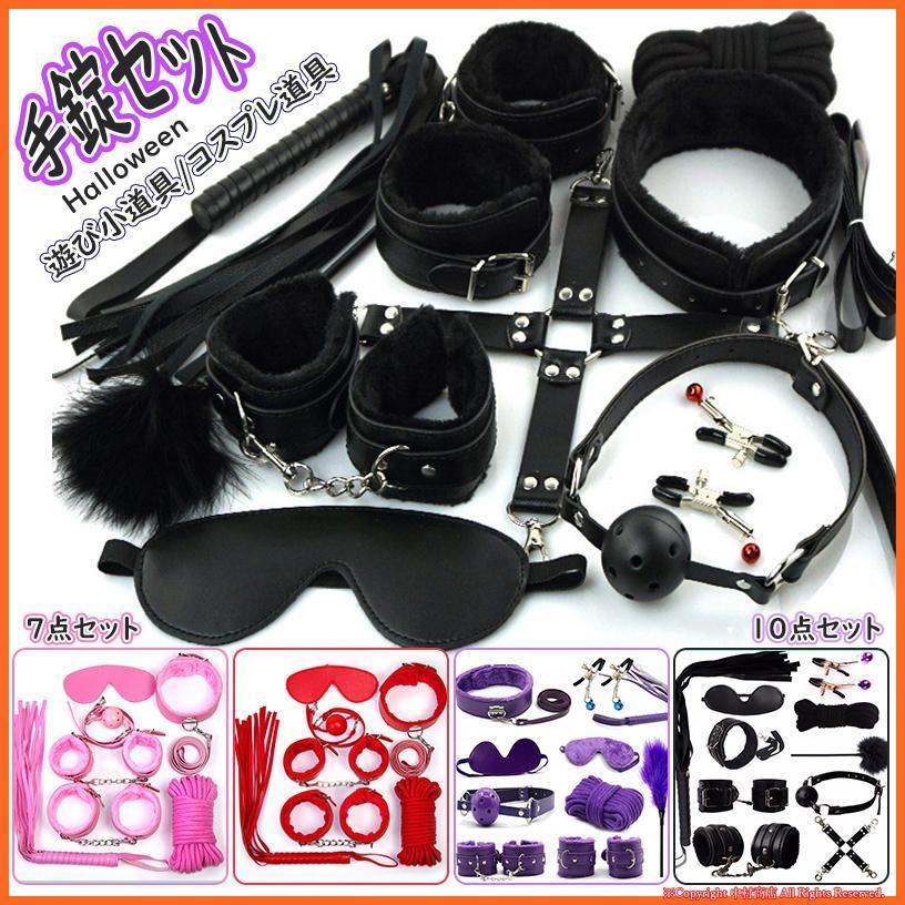 手錠 腕輪 手枷 足枷 7点セット SM かわいい ふわふわ おもちゃ 10点セット ファー 縄 鞭 ネックレス ピンク 紫 赤 黒 ハロウィン コスプレ セクシー halloween