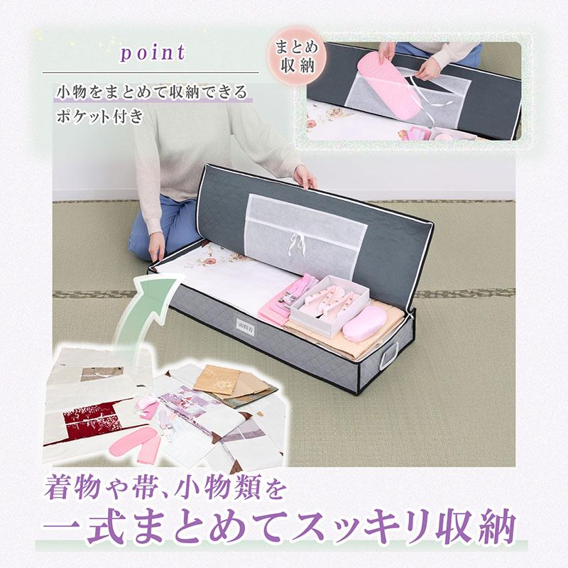 ●ホコリや汚れから守り大切な着物一式をまとめて保管。フタ裏に小物用ポケット付きで帯締めなどの小物も一緒に保管できる。