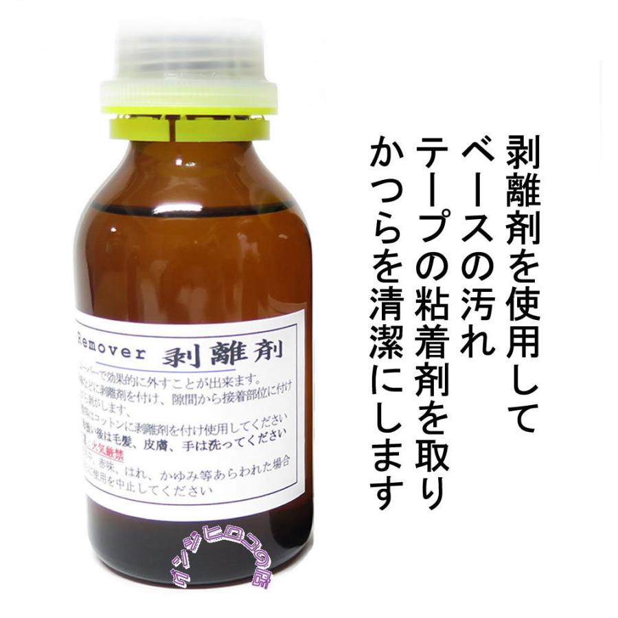 コットンに剥離剤を付け、かつらベースの両面テープを拭き取ります