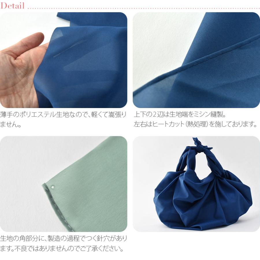 | 備考 | : | シンプルな大判風呂敷です。 荷物のパッキングに。エコバッグがわりにお使いいただけます。 薄手のポリエステル生地なので、軽くて嵩張りません。 風呂敷は包む物に合わせて形が変えられるので、様々なシーンで重宝します。 大きさは、三巾(みはば)と呼ばれる約105cmサイズです。 高さのある重箱包み、着物などを包むのに使い勝手の良いサイズ。 和装小物や衣類をまとめたり、一升瓶やワインボトル包みにも。 ふろしきバッグにもおすすめです。 ■撥水加工したポンジ生地風呂敷はこちらからご購入いただけます。 ※上下の2辺のみ生地端をミシンで縫製してあります。左右はヒートカット(熱処理)を施しております。一般的な仕様ですのでご了承ください。 ※生地の角部分に、製造の過程でつく針穴があります。不良ではありませんのでご了承ください。 | ||