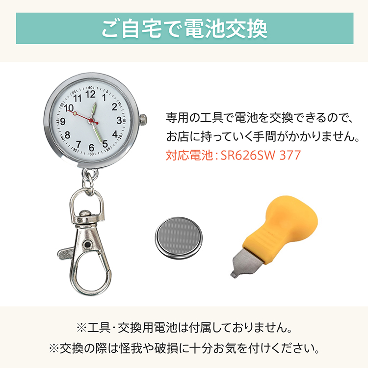 | 重量・耐久 | ・ナースウォッチ重量:(約)17g ・リールキーホルダー重量:(約)19g |