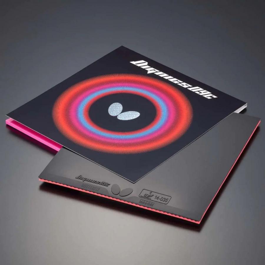 ◇粘着力と弾みの両立をハイレベルで実現ハイテンション効果を大幅にアップしつつも粘着性ラバーの特長が発揮される独自配合のシートと、硬めの「スプリング スポンジX」との相乗効果により、粘着力と弾みを高次元で両立。開発コードNo.209のツブ形状が、回転量の多いドライブやカット、台上技術やカウンターのしやすさをもたらします。粘着性ハイテンションの特長が向上した『ディグニクス09C』は、粘着性の打球感を求める選手のプレーをさらなる高みへと導きます。