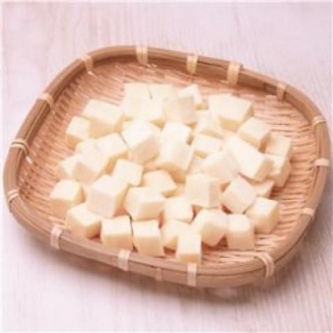 絹ごしとうふをサイコロ状にカットし急速冷凍しました。カットしてあるので調理の手間が省け、必要な分だけ使用できます。自然解凍せずに凍ったままの状態で汁物・タレに入れ、加熱しながら解凍して下さい。15mm角サイズとなります。