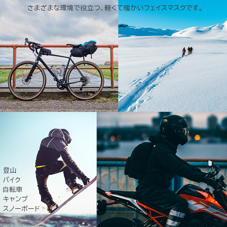 軽量で暖かいフェイスマスクです。折りたたむとコンパクトになり持ち運びにも便利です!