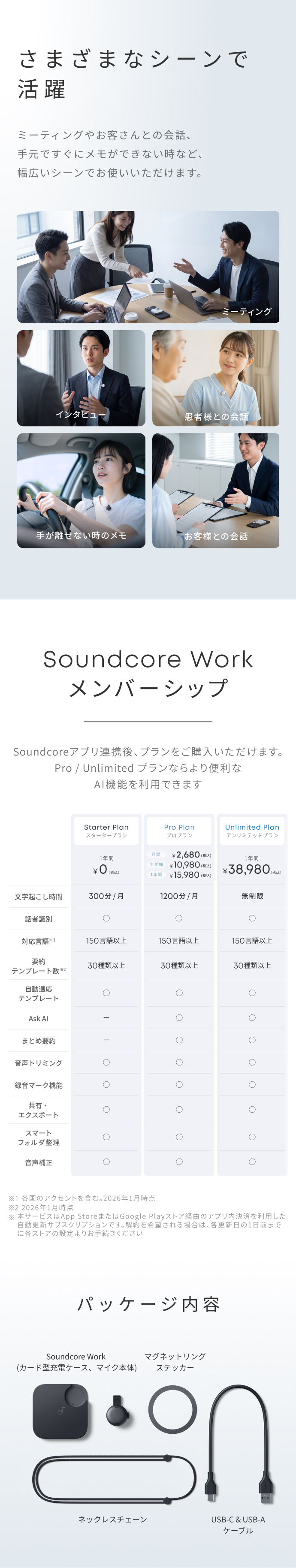 ※Soundcoreアプリ連携後、プランをご購入いただけます。Pro / Unlimited プランならより便利なAI機能を利用できます。