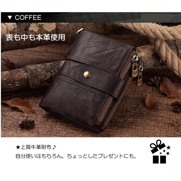財布 メンズ 二つ折り 軽量 本革 スキミング防止 小銭入れ コンパクト ミニ財布 プレゼント