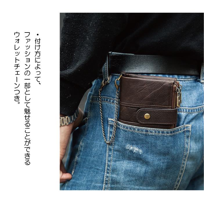 | 商品説明 | ★上質牛革財布。自分使いはもちろん、ギフトにも。<br/>★チェーン対応で落下対策にも安心。<br/>★軽量約116g。<br/>★RFIDスキミング防止:電磁波シールド素材でカード情報を保護。<br/>★カード×16/札入れ×2/小銭入れ×1。大きく開いて取り出しやすい。 |