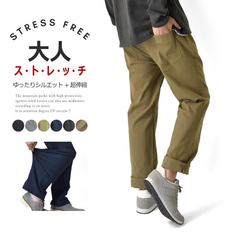超伸縮ハイテンション ストレッチ ワイド 股上深め チノパン イージーパンツ 【B8A】
