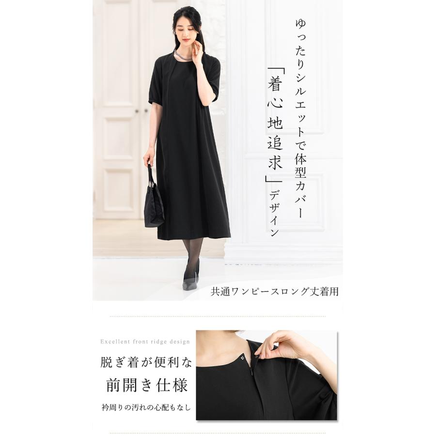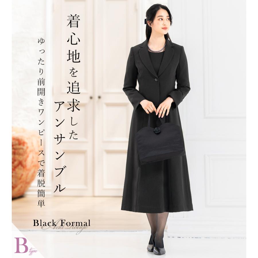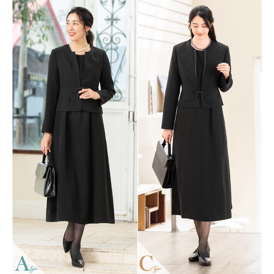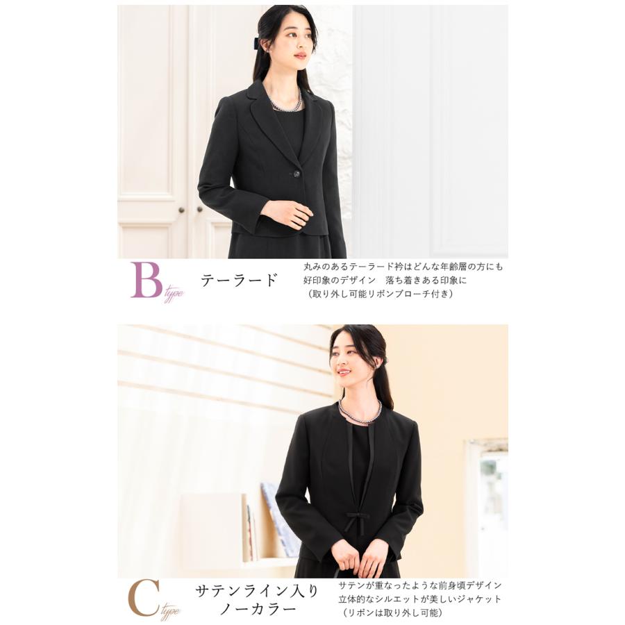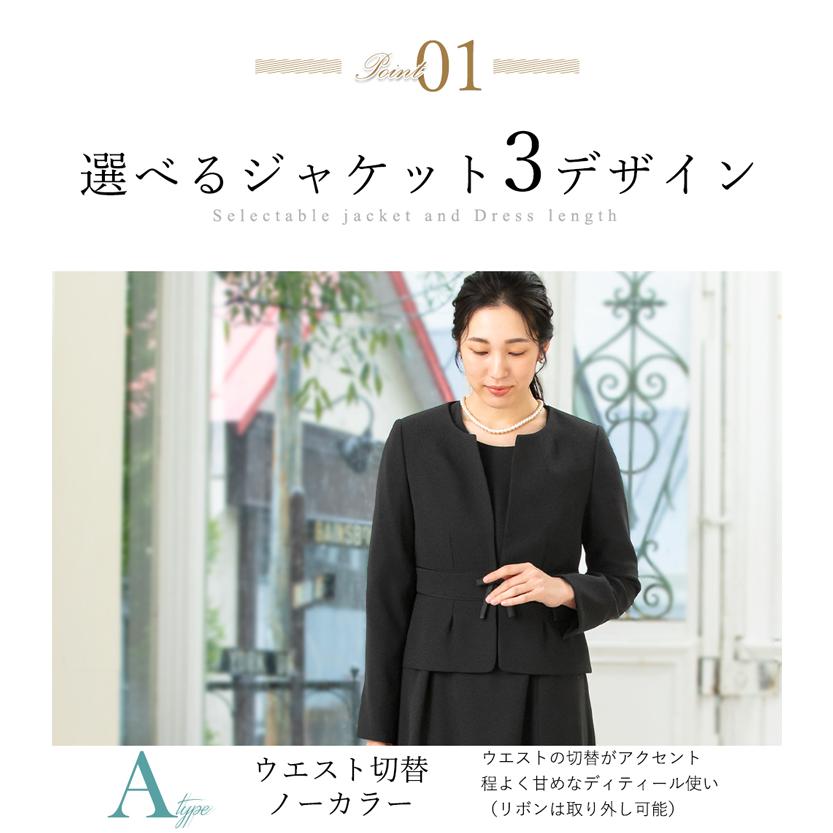 冠婚葬祭のマナーに沿った上品なブラックの選べるジャケットと選べる着丈ワンピースのアンサンブルセットです。