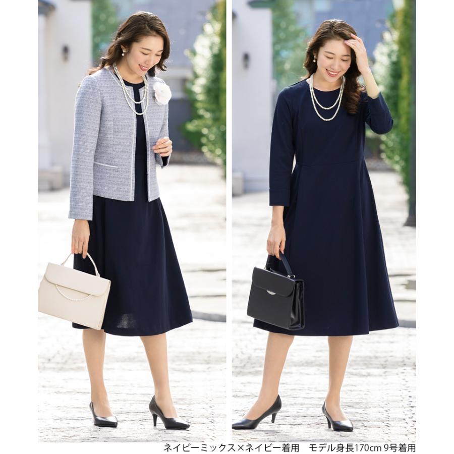 授業参観などの学校行事、発表会など、上品かつきちんと感が求められる場面に、定番のきれいめセレモニースタイルとして。