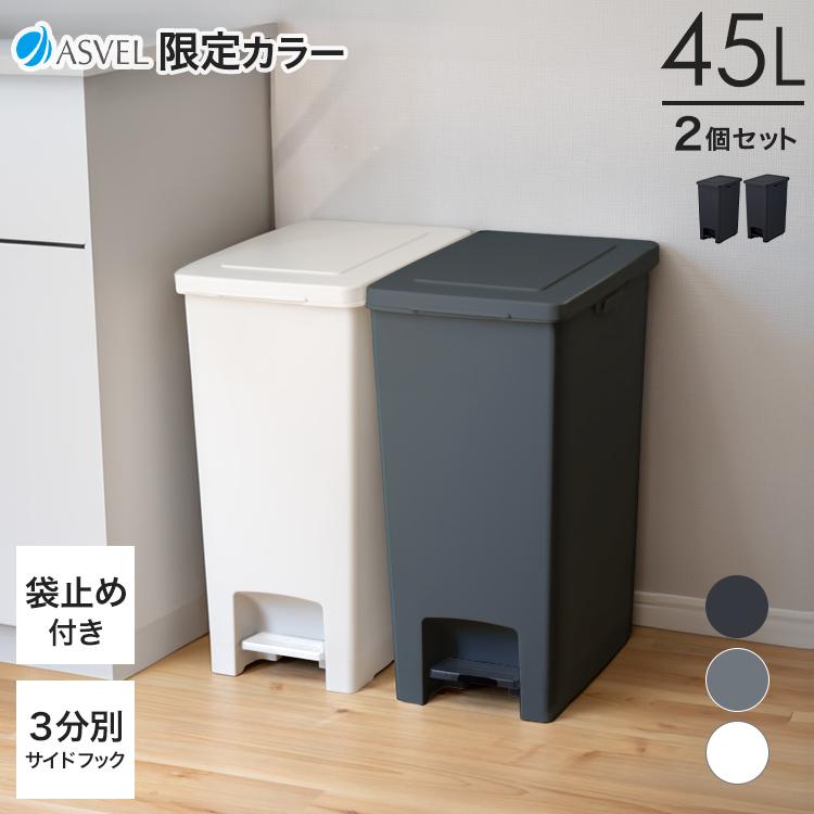 ゴミ箱 おしゃれ キッチン 45リットル 2個セット 限定カラー ペダル スリム アスベル ダストボックス 分別 45l 45L 大容量 蓋付き 資源ゴミ ごみ箱 ランクイン