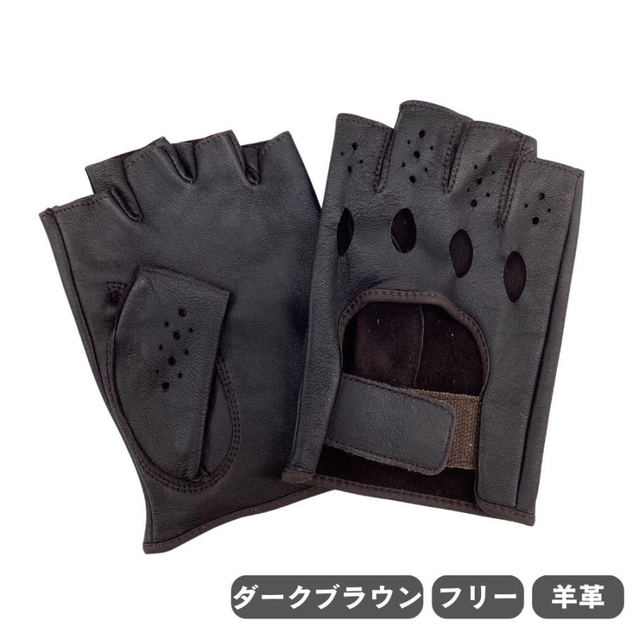 ドライビング グローブ レザックス 半指タイプ 羊革 ダークブラウン こげ茶 車用 JOYFIT 07