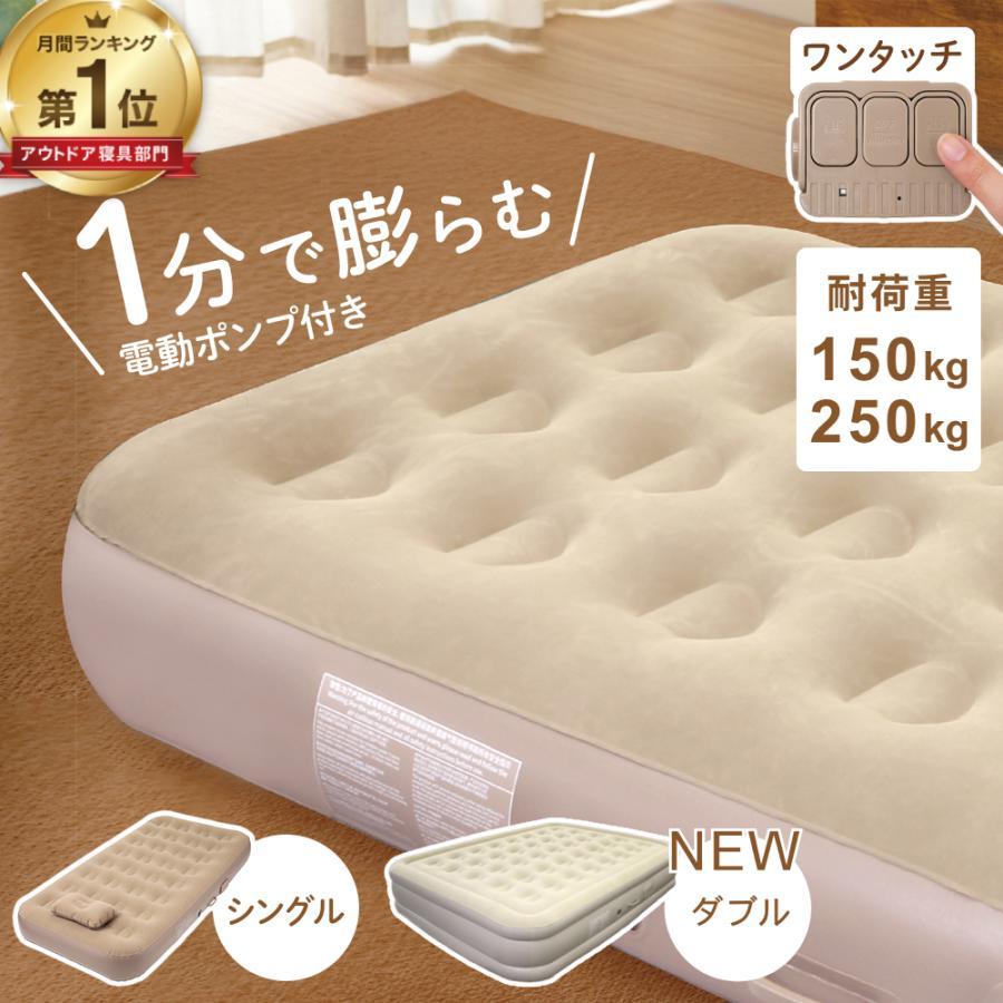 エアーベッド 電動 ダブル シングル エアーマット エアベッド エアマット 車中泊 マット キャンプ エアーマットレス 電動エアーベッド 簡易ベッド 耐荷重150kg