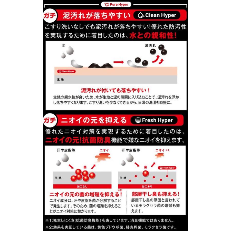 | 《 Pure Hyper 》 ■泥汚れが落ちやすい「Clean Hyper」 泥汚れが付いても落ちやすい! 生地の親水性が良いため、水が生地と泥の隙間に入り込むことで、泥汚れを浮かし落ちやすくなります。こすり洗いを少なくできるから、日頃の洗濯も時短に。 ■ニオイの元を抑える「Fresh Hyper」 ニオイの元の菌の増殖を抑える! ニオイ成分は、汗や皮脂を菌が分解することで発生します。 そのため、菌の増殖を抑えることがニオイ対策に繋がります。 部屋干し臭も抑える! 部屋干し臭の原因と言われているモラクセラ菌の増殖も抑えます。 ●素材:(本体)ポリエステル100%、(尻当て)ポリエステル100% ●タイプ: 1.レギュラー/両ヒザ2重構造【12JD2F6001】※股下SS(49cm)3cmピッチ ※ヒザ部分が同素材で二重構造となっております。 2.ストレート【12JD2F6201】※股下S(71cm)3cmピッチ 3.ショート【12JD2F6401】※股下SS(43cm)3cmピッチ 4.足掛けストレート【12JD2F6501】※股下S(73cm)3cmピッチ 5.バギー【12JD2F6601】※股下S(71cm)3cmピッチ 6.ショートフィット【12JD2F6701】※股下S(40cm)2cmピッチ ※この商品はパンツのみになります。ベルトは付属しません。 ●左前にランバードマーク ●インドネシア製 ●ユニフォームパンツ 野球練習着 練習用 野球パンツ 大人用 スペアパンツ トレーニングウェア 無地 大人用 バギータイプ バギーパンツ 足掛け 伸びる |