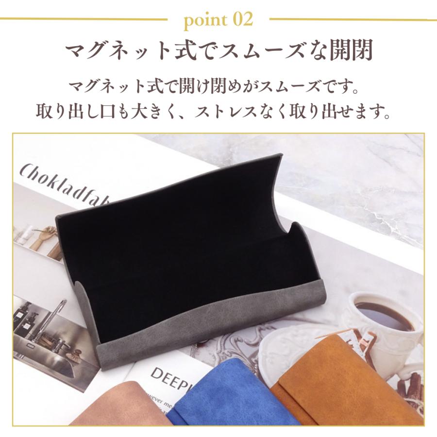 手触りがよく、手になじみやすい、上品で高級感のあるメガネケースです。
