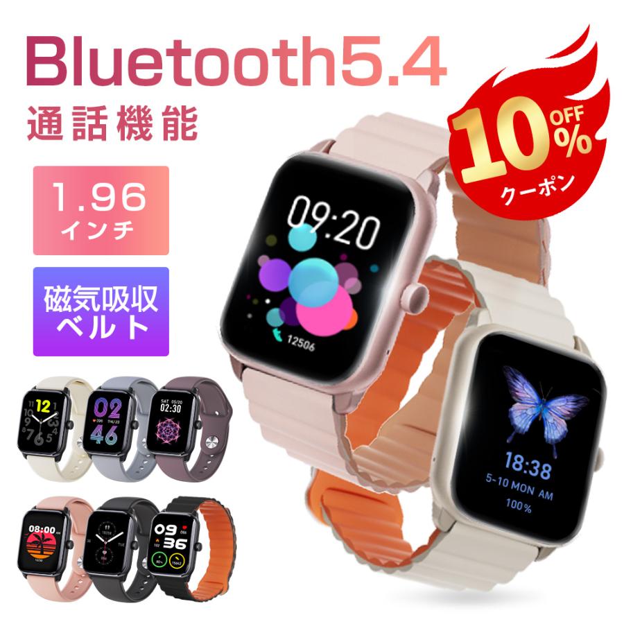 itDEAL スマートウォッチ Bluetooth通話 磁気吸収ベルト Bluetooth5.4 睡眠記録 1.96インチ IP68防水 血中酸素測定血圧測定 着信通知 心拍数測定 腕時計