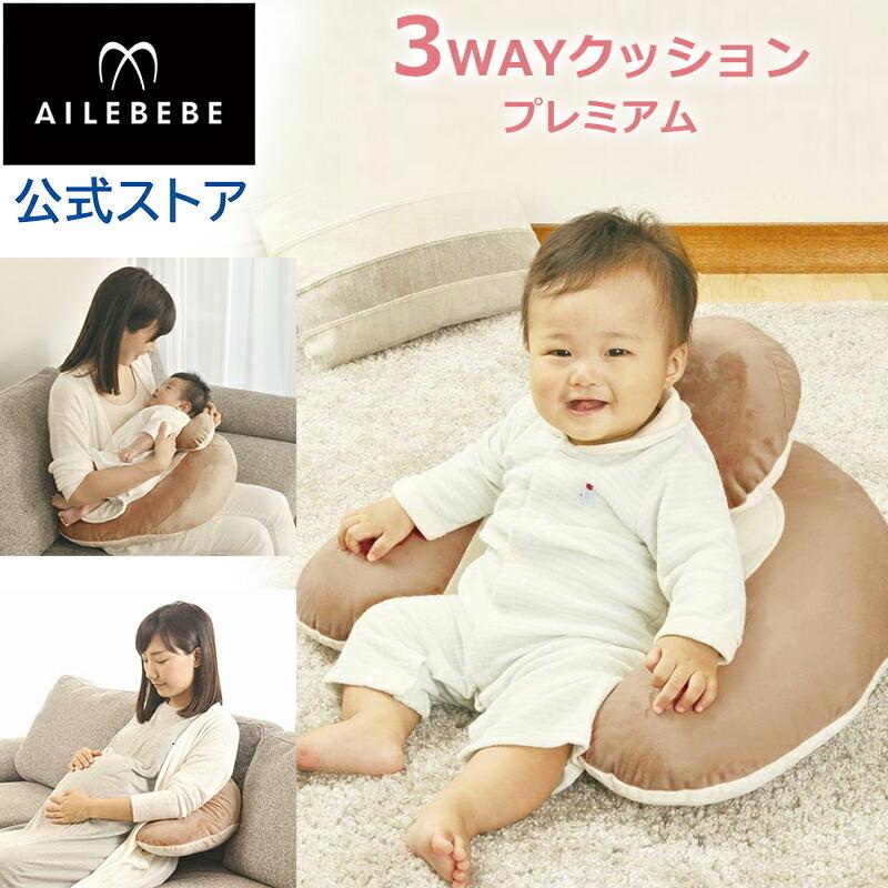 授乳クッション 洗える 3Way エールベベ カーメイト BB711 エールベベ スリーウェイクッション プレミアム BL ブラウン ailebebe carmate