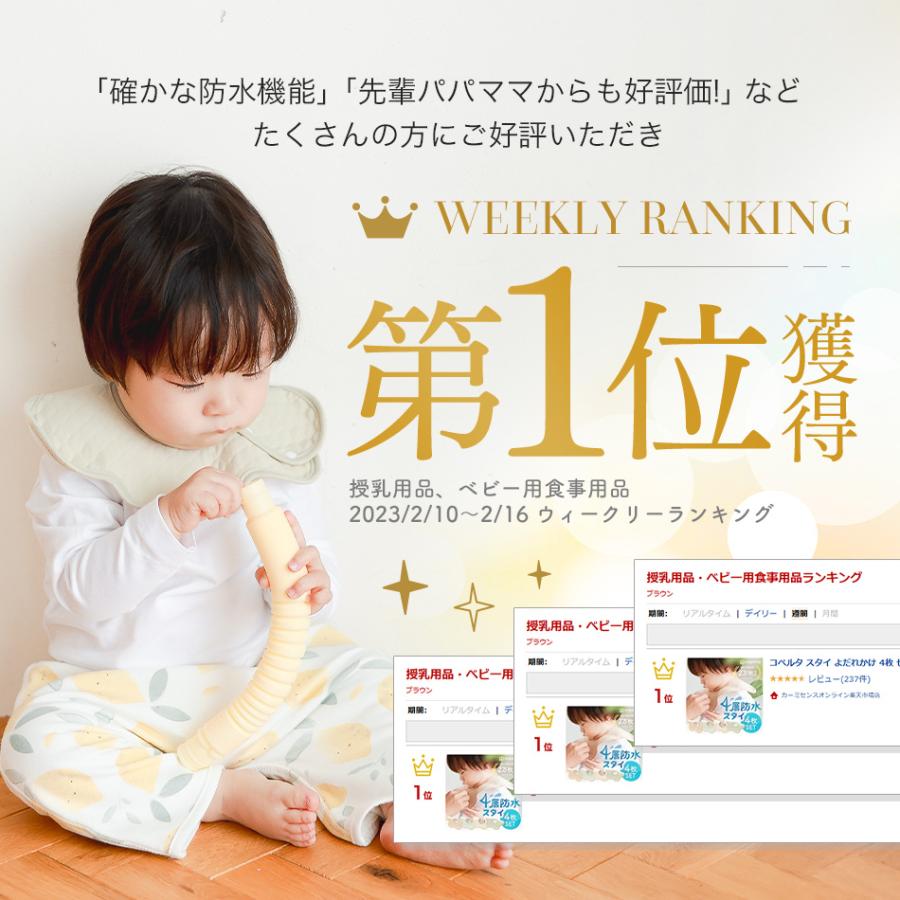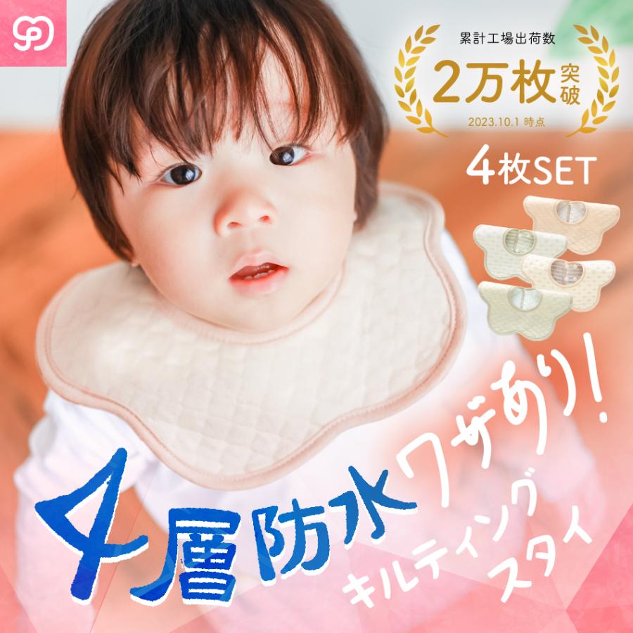 | コペルタスタイは、4層構造設計にしています! ほっぺに当たる部分はオーガニックコットンで肌に優しく、 そして4層目の防水加工シートで、よだれが服に沁みるのをしっかり防ぎます! | よだれが服に沁みてしまって、服まで洗濯するはめに、、なんてこと、よくありませんか? |