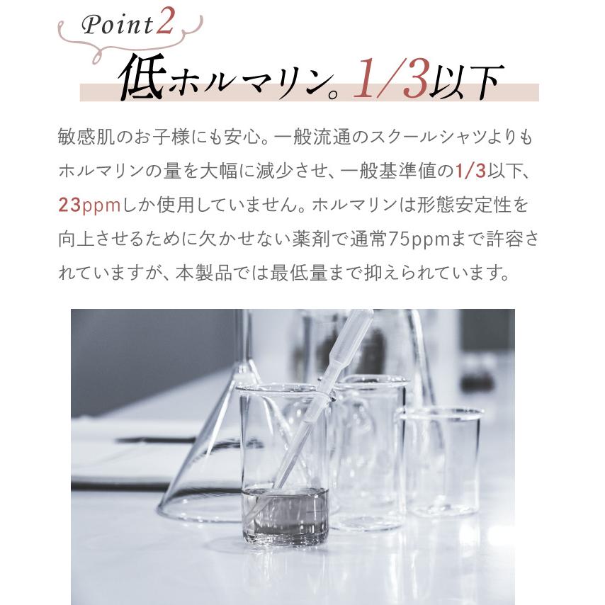 なめらかで心地よい天然素材「綿100%」肌にやさしいスクールシャツです。