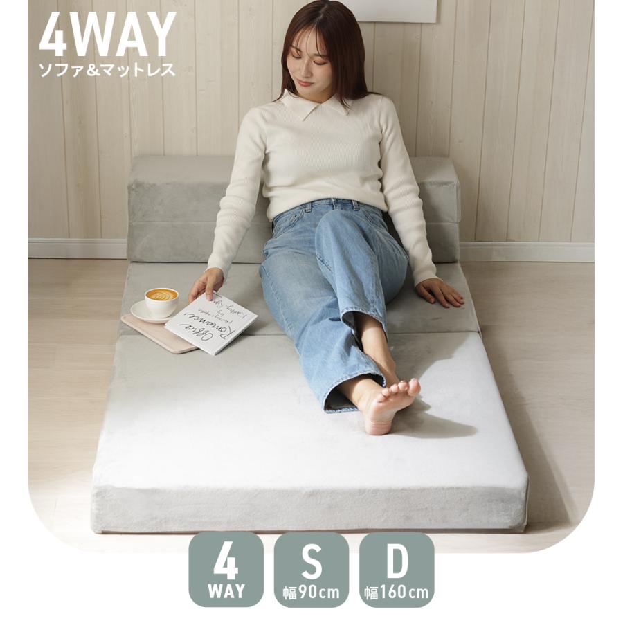 4WAY ソファ&マットレス シングル 起毛調 ソファ マットレス 背もたれ付きマットレス 枕付きマットレス 1台4役