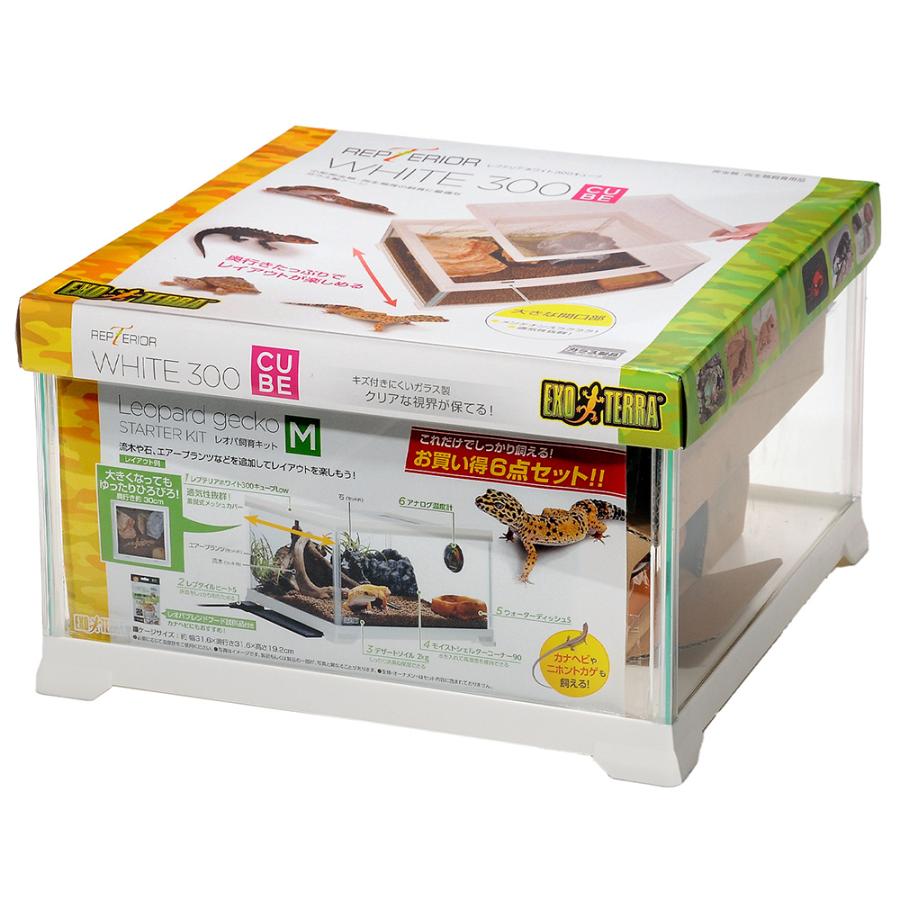| セット内容 | レプテリアホワイト300キューブLow×1 レプタイルヒートS×1 アナログ温度計×1 ウォーターディッシュS×1 デザートソイル2kg×1 モイストシェルターコーナー90×1 レプテリア300飼育例×1 |