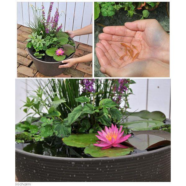 (ビオトープ)睡蓮セット(睡蓮桃+メダカ睡蓮鉢グレー+ヒメダカ+浮き草他)1セットオリジナル 本州四国限定