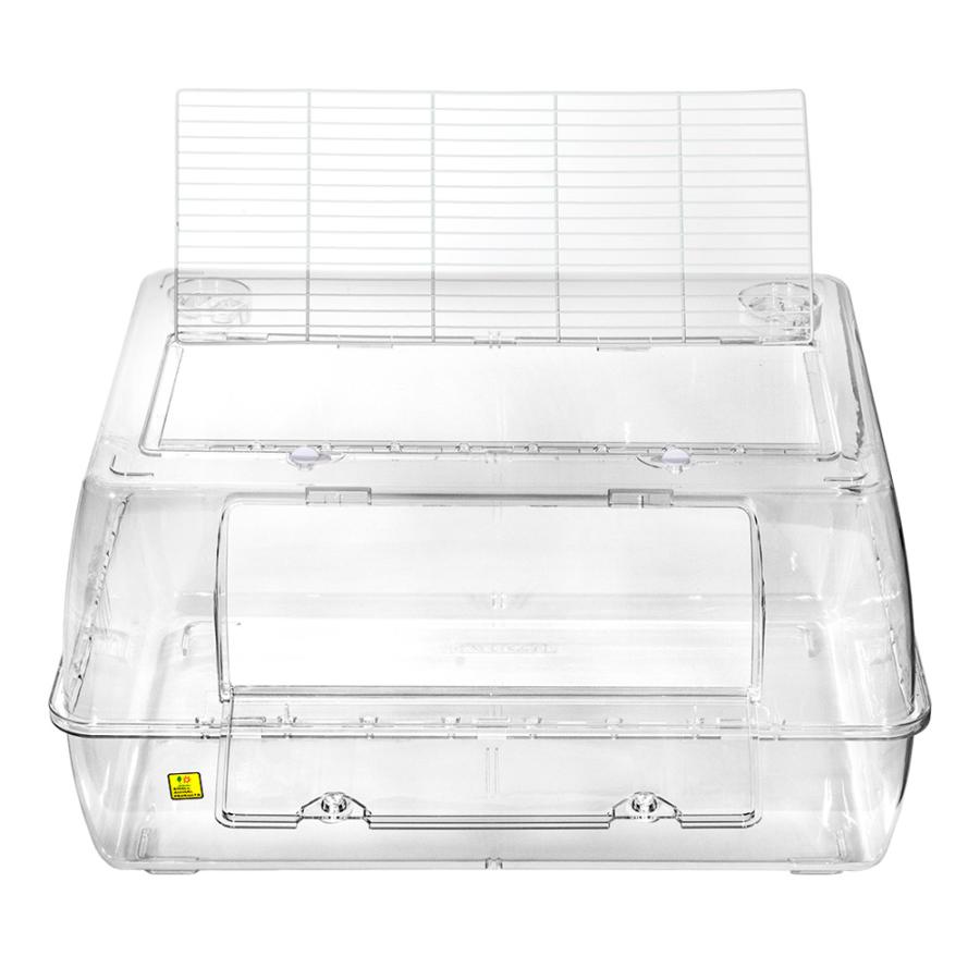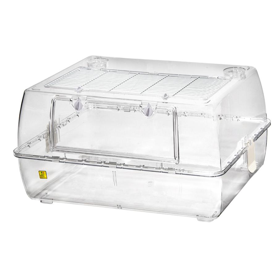 | 特長 | ●中が見やすい透明ボディと大きな扉が特徴の飼育ケージです。 ●ルーミィシリーズに、広々とした横幅約60cmサイズが加わりました。 ●組立てや分離もカンタンにでき、スッキリと隅々まで楽にお掃除です。 ●既存のルーミィ用ホイールジョイントも使用できるほか、別売の「ルーミィ60専用ワイヤーホイールジョイント」を使用すれば、サイレントホイール21やサイレントホイール25を使用する事も可能です。 ●対応ハムスターパイプ各種(※別売)を使用して、色々な拡張も楽しめます。 |