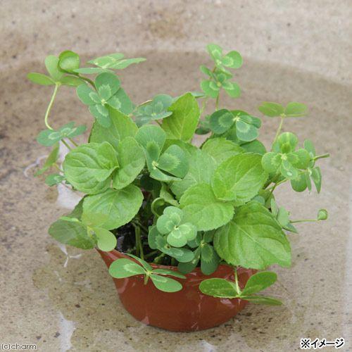 | 育て方 | 【ムチカ】 オーストラリア北部原産の湿地植物。デンジソウ科の植物特有の四葉に斑が入り、よりクローバー(シロツメクサ)に似た草姿になるのが特徴です。水深が浅いと立ち上がり、水深が深いと浮き葉を上げるなど、変化の激しい水辺の環境に適応した植物で、高さは5〜20cm程になり、横に這うように成長していきます。育成は容易で、水と光が十分にある環境でなら枯死させることなく育てることができます。 耐寒性があるので越冬は可能ですが、冬季は地上部の葉のみ枯れてしまうので、通年を通して緑を保ちたければ室内で保温することが必要です。 【ウォーターミント】 地中海沿岸を中心に、ヨーロッパに広く原産する多年生の湿地植物。葉は卵形で対生し、縁には鋸歯があり、葉脈を中心に葉が赤味がかるのが特徴です。7月から10月ごろ、茎頂や葉腋から花序をだし、薄紫色の花を咲かせます。全体に強いハッカ臭を持ち、ペパーミントの片親としても有名です。性質は丈夫で水辺を好み、ある程度水深のある環境にも適応するため、水槽内での育成も可能です。また他の植物にも見られる特性として直射日光が強い日が続いたりすると紫外線から身を守る為、頂点を中心に紫色に色づきます。 お届け直後は根付いていない為、直射日光を避け、腰水の状態で栽培をお勧め致します。 |