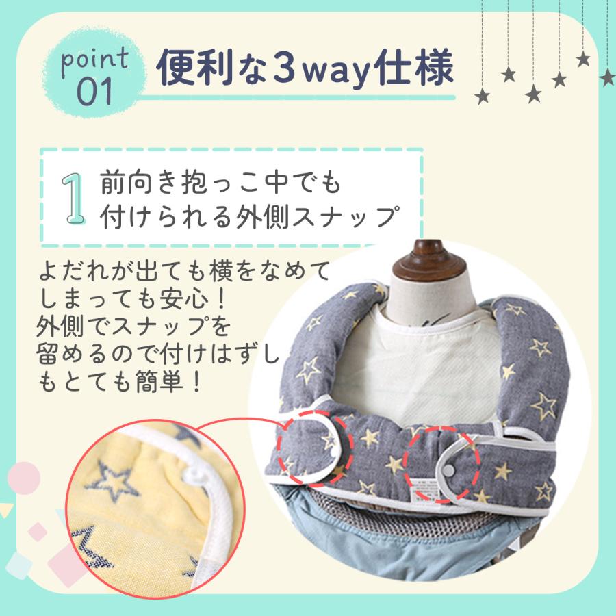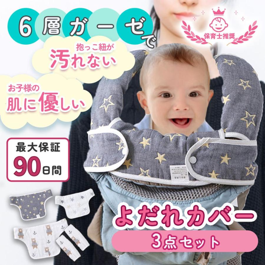 抱っこ紐カバー よだれカバー ベビー 赤ちゃん パッド ガーゼ セット ボタン 簡単 安心 洗濯 かわいい 吸水 前向き 対面 出産祝い コットン 通気性