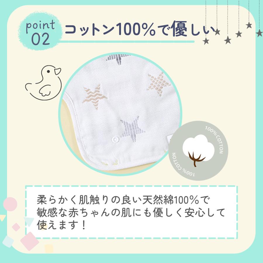 【吸水性・速乾性抜群】吸水性が高く速乾性があるため、よだれや汗を素早く吸収し、赤ちゃんの快適さを保つ。