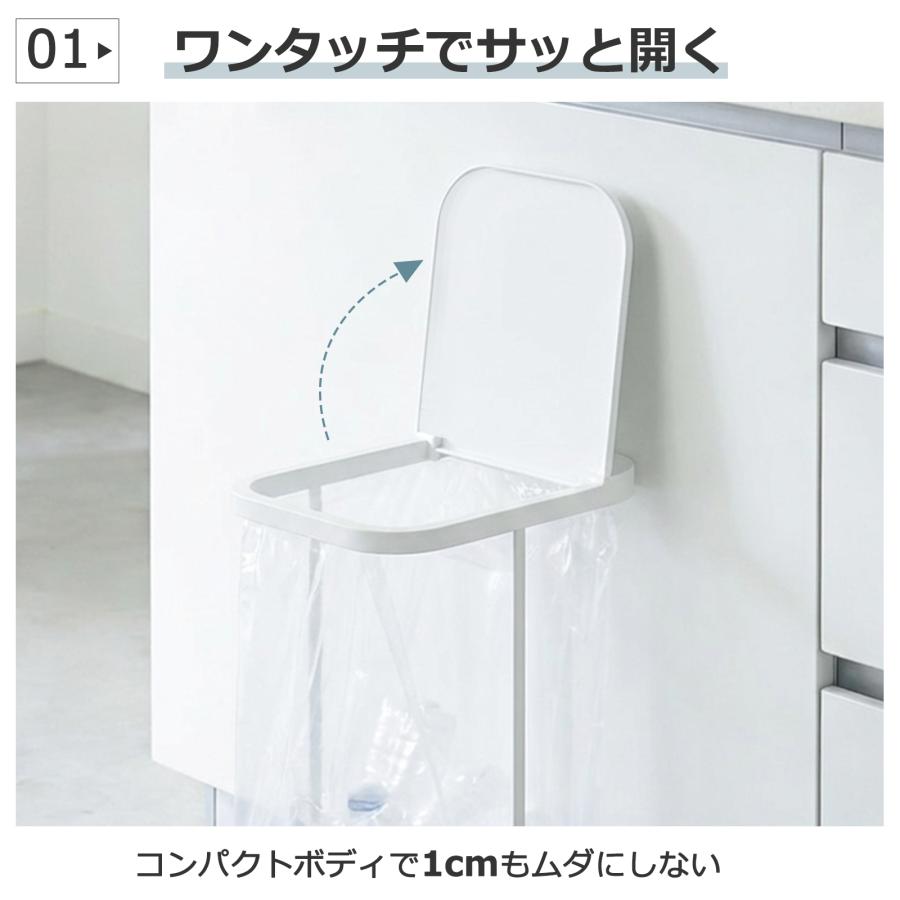 ○ポリ袋を掛けてフタをするだけでゴミ箱に早変わりする分別ゴミ袋ホルダー。